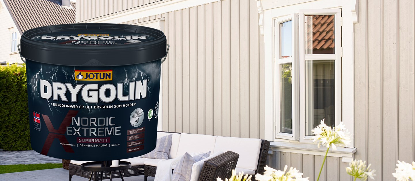 Jotun lanserer nyheten DRYGOLIN Nordic Extreme Supermatt med supermatt utseende og Extreme-teknologi som gir fasaden den beste beskyttelsen – uansett vær.