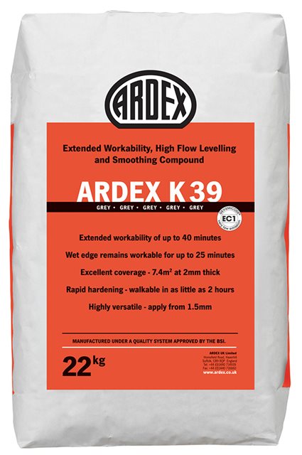K39 er en sementbasert, selvutjevnende avrettingsmasse med lang bearbeidingstid. Den er egnet til avretting og oppretting av undergulv før legging av elastiske og tekstile gulvbelegg,