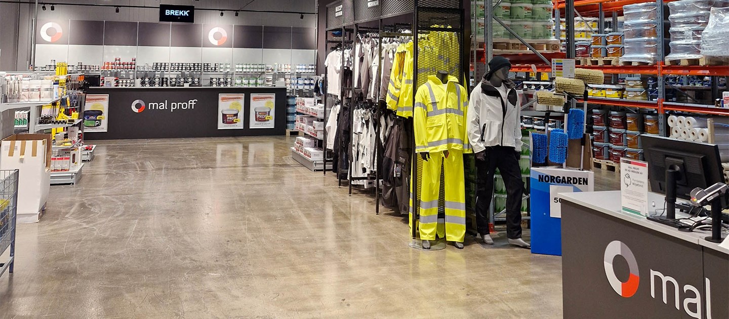 Nye Mal Proff Ski har stor lagerkapasitet, noe som åpner for leveranser til større prosjekter. Nabobutikken XL-Bygg ligger vegg i vegg, men Mal Proff har egen inngang og egen parkering.