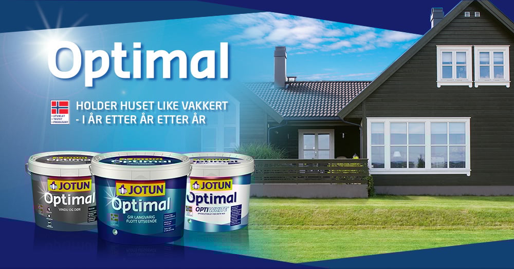 OPTIMAL er tilpasset det norske klimaet og er tilsatt effektive midler mot svertesopp. Moderne teknologi gjør at farge og glans holder seg like flott i år etter år, samtidig som malingen tar opp minimalt med skitt. Maler du med optimal er det lenge til neste gang du trenger å male.