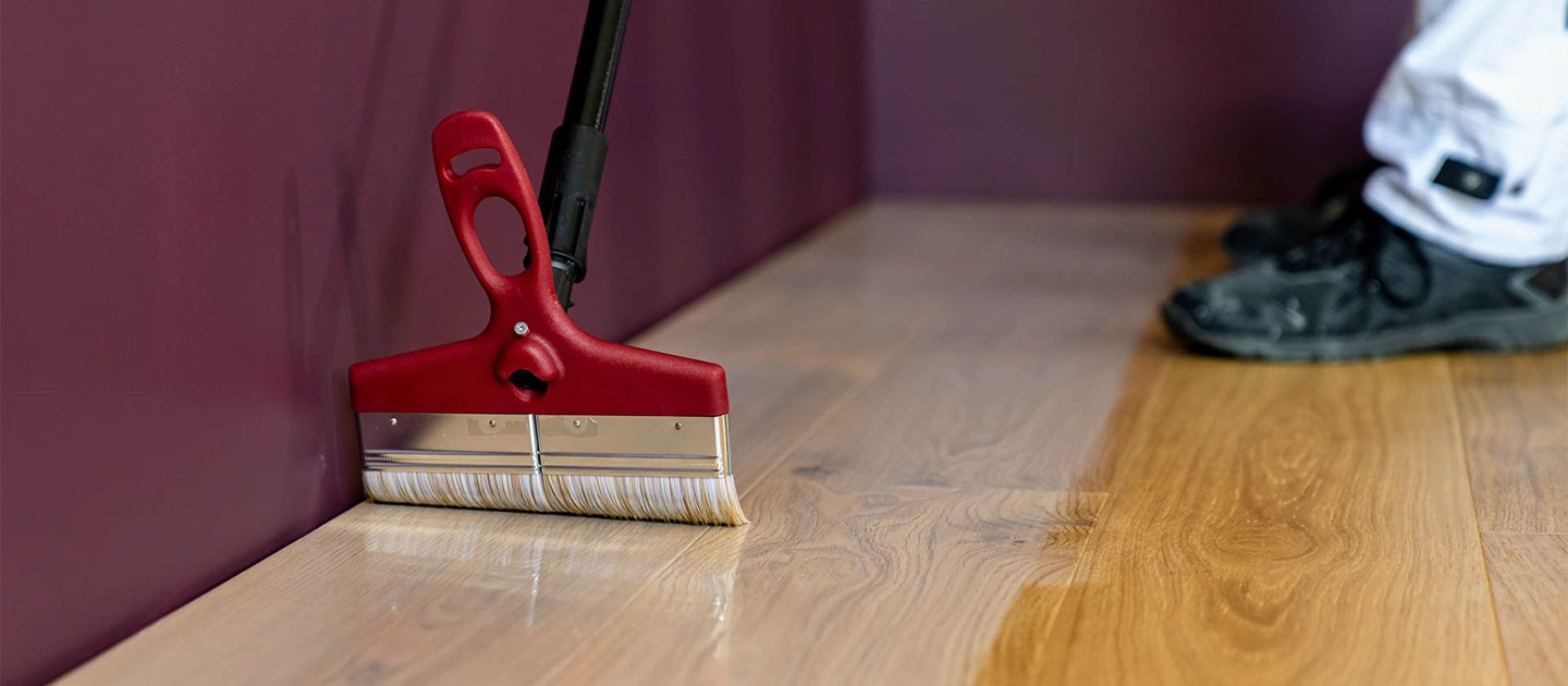 Han legger til at lakken er enkel å jobbe med og kan legges på små og store gulv.